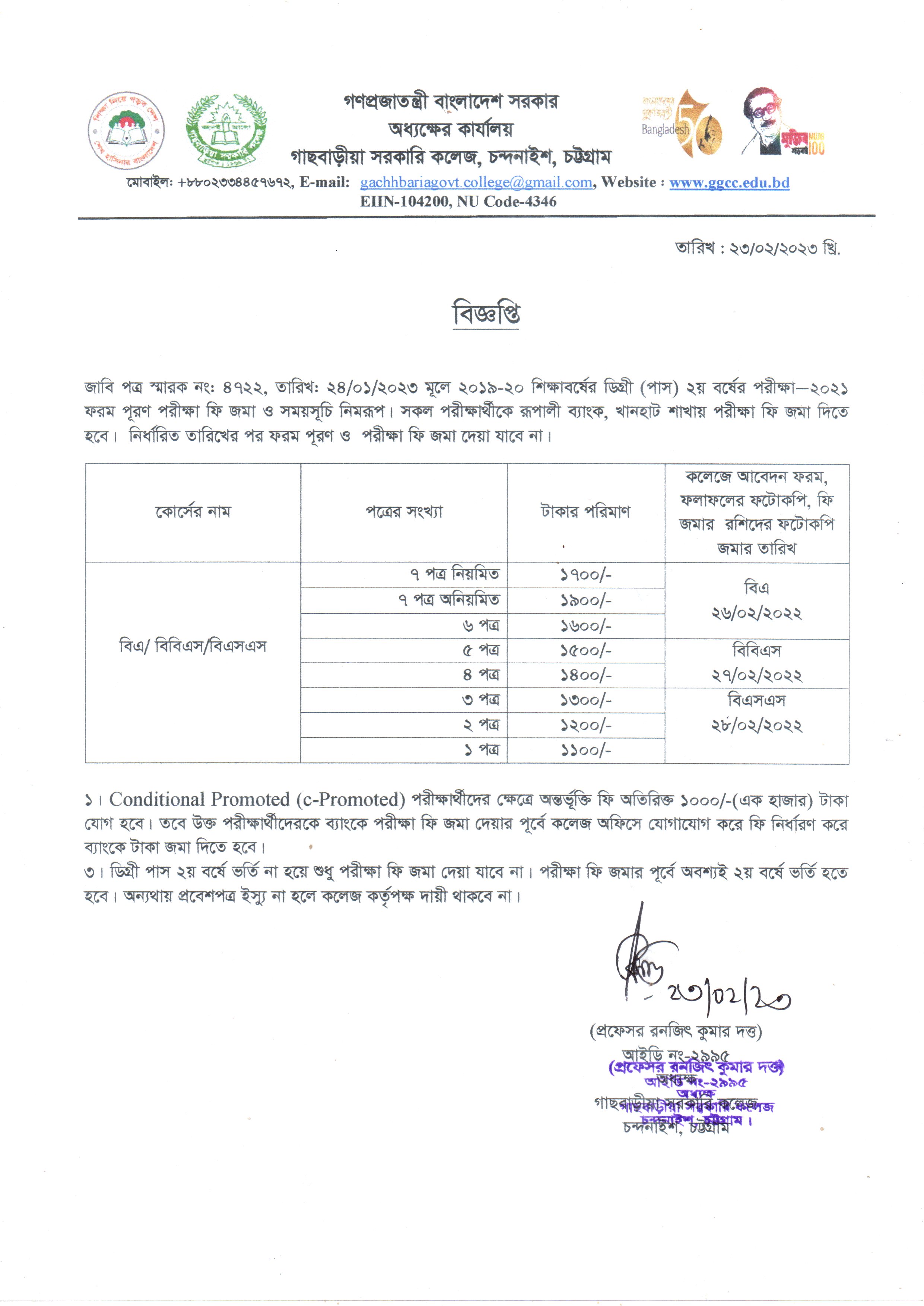 ২০১৯-২০২০ শিক্ষাবর্ষের ডিগ্রী পাস ২য় বর্ষের পরীক্ষা-২০২১ এর ফরম পূরণ বিজ্ঞপ্তি