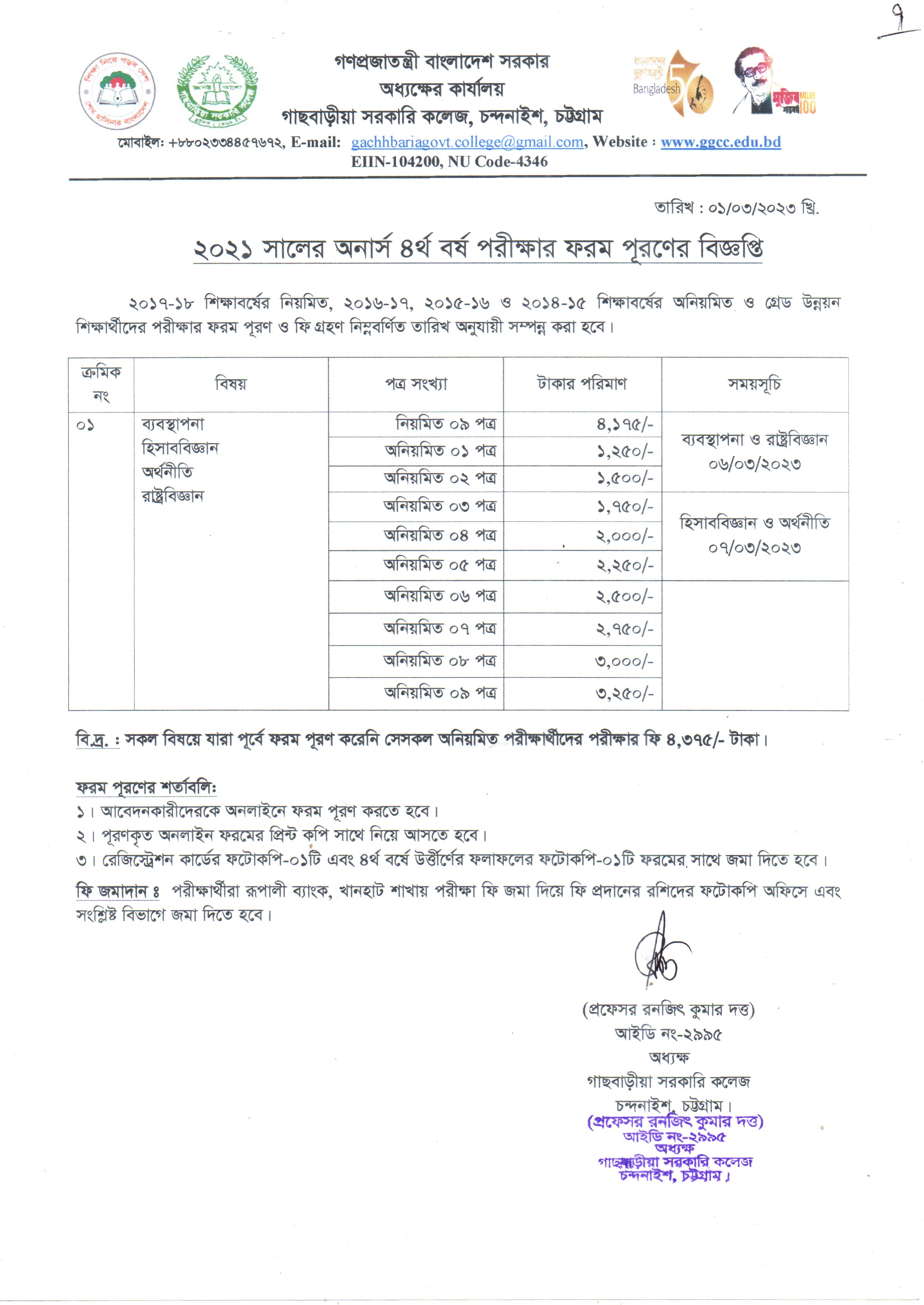 ২০২১ সালের অনার্স ৪র্থ বর্ষ পরীক্ষার ফরম পূরণের বিজ্ঞপ্তি