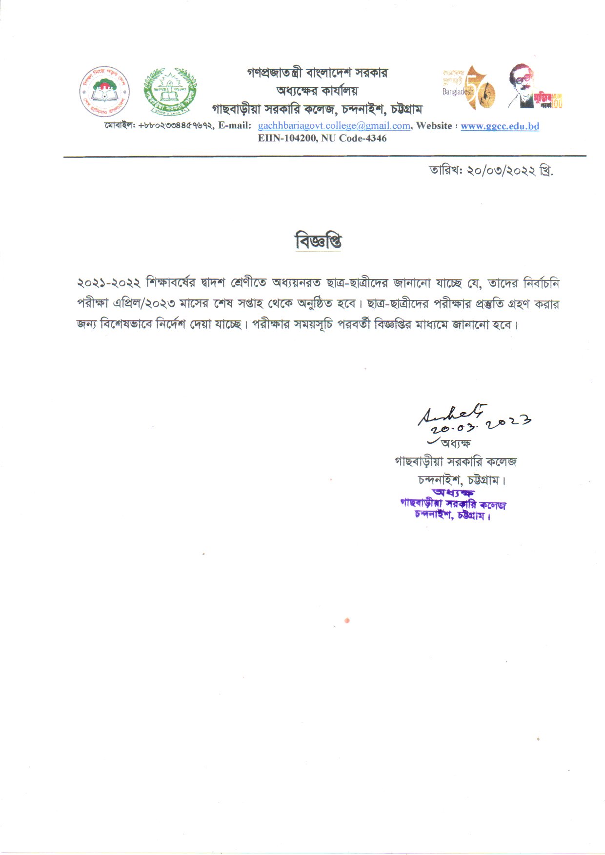 গাছবাড়ীয়া সরকারি কলেজ, চন্দনাইশ, চট্টগ্রাম।