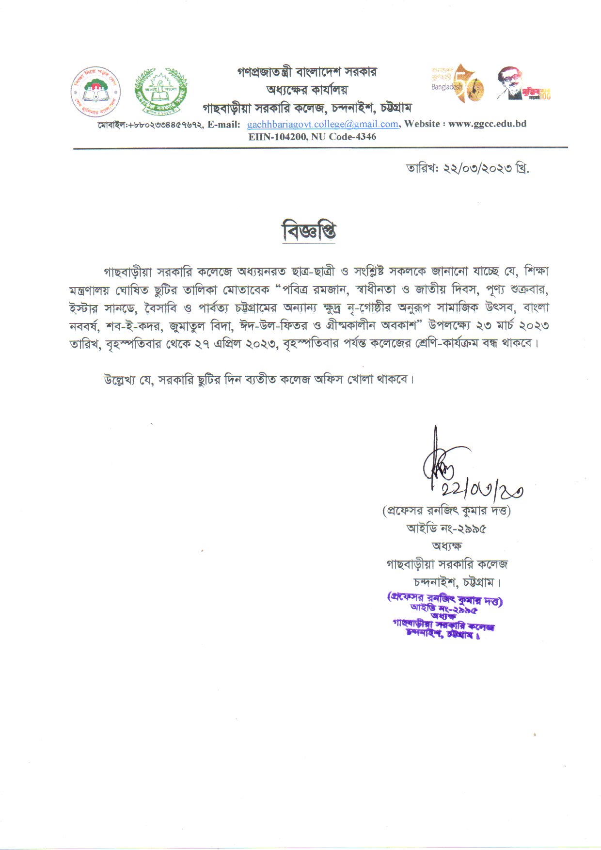 গাছবাড়ীয়া সরকারি কলেজ, চন্দনাইশ, চট্টগ্রাম।