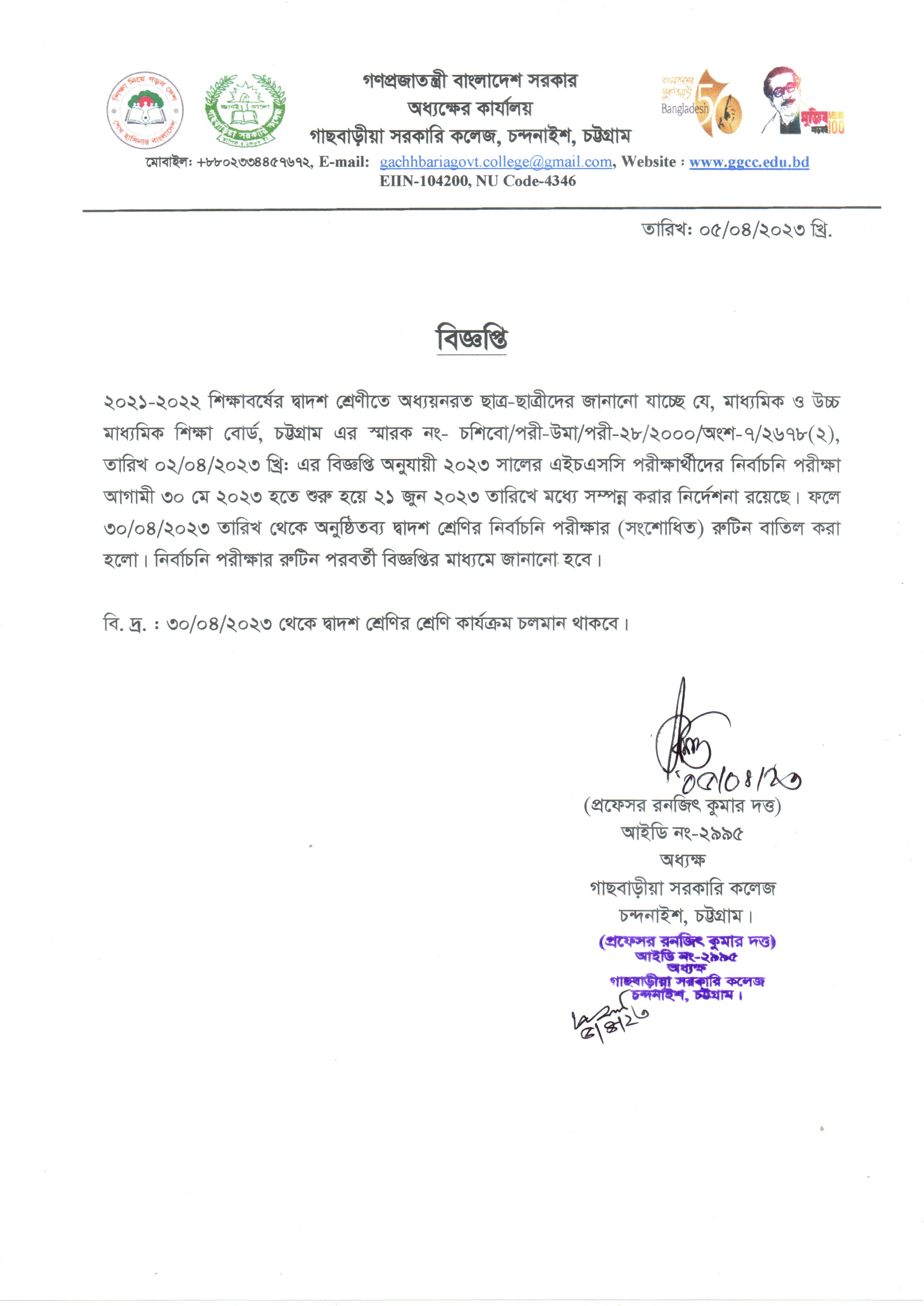 দ্বাদশ শ্রেণির নির্বাচনি পরীক্ষা বাতিল ও শ্রেণি কার্যক্রম চলমান প্রসঙ্গে