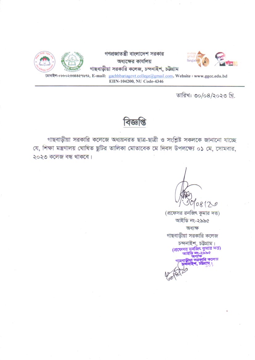 গাছবাড়ীয়া সরকারি কলেজ, চন্দনাইশ, চট্টগ্রাম।