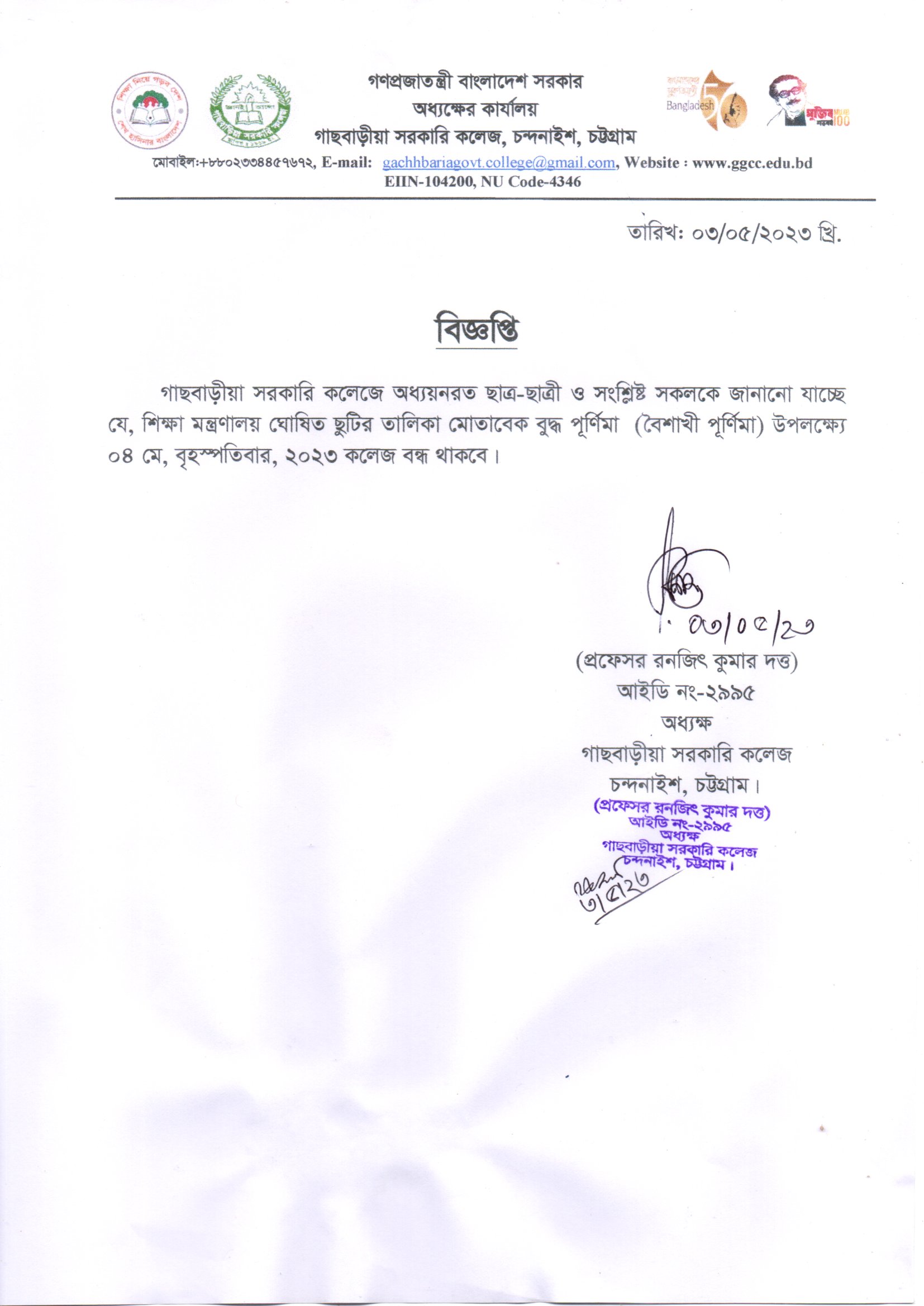 গাছবাড়ীয়া সরকারি কলেজ, চন্দনাইশ, চট্টগ্রাম।