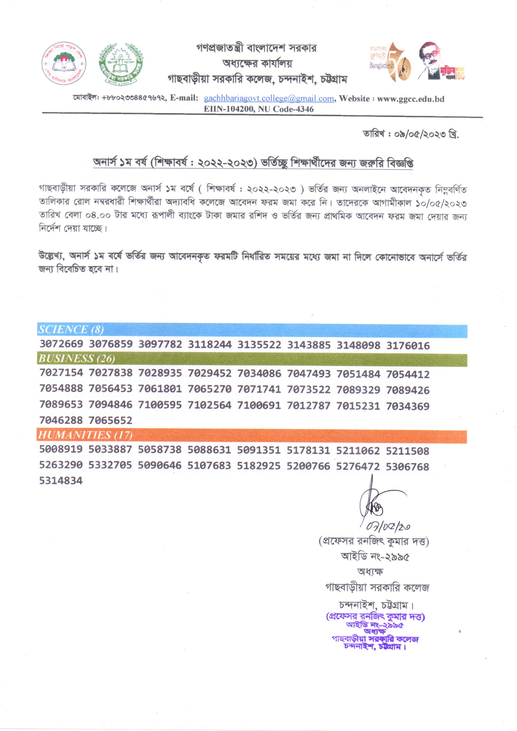 অনার্স ১ম বর্ষ (শিক্ষাবর্ষ : ২০২২-২০২৩) ভর্তিচ্ছু শিক্ষার্থীদের জরুরী বিজ্ঞপ্তি